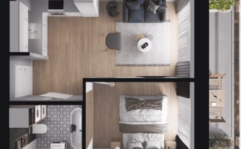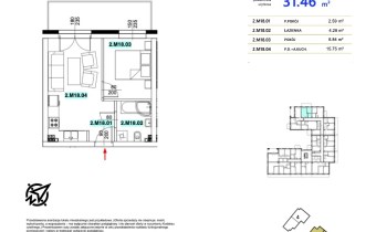 2M18 - mieszkanie o powierzchni 31,46 m2, 1 piętro, 2 pokoje, taras - 9,23 m2.