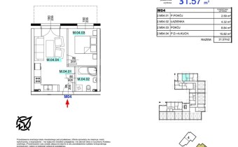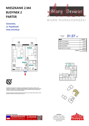 2M4 - mieszkanie o powierzchni 31,57 m2, parter, 2 pokoje, ogródek.