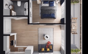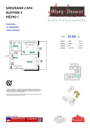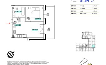 2M14 - mieszkanie o powierzchni 31,54 m2, 1 piętro, 2 pokoje, taras - 9,83 m2.