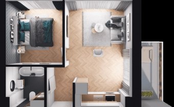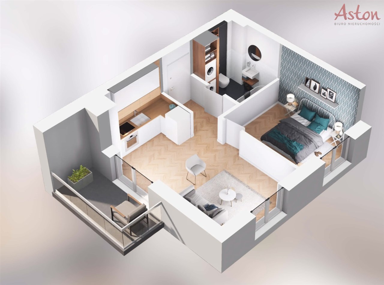2M45 - mieszkanie o powierzchni 34,57 m2, 3 piętro, 2 pokoje, balkon.