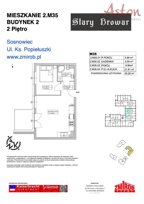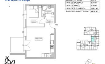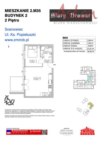 2M35 - mieszkanie o powierzchni 39,14 m2, 2 piętro, 2/3 pokoje, balkon.