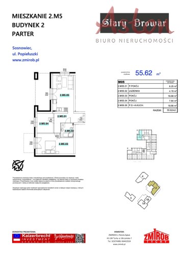 2M5 - mieszkanie o powierzchni 55,62 m2, parter, 3 pokoje, ogródek.