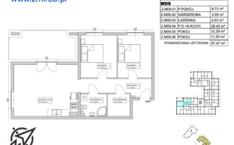 2M9 - mieszkanie o powierzchni 67,47 m2, 1 piętro, 3 pokoje, taras - 13,45 m2.