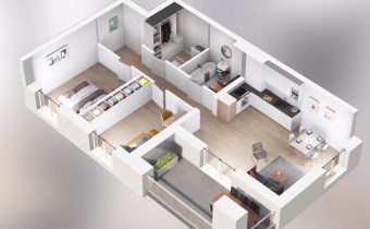 2M37 - mieszkanie o powierzchni 66,74 m2, 3 piętro, 3 pokoje, taras - 13,45 m2.