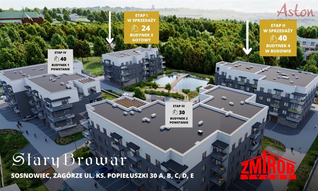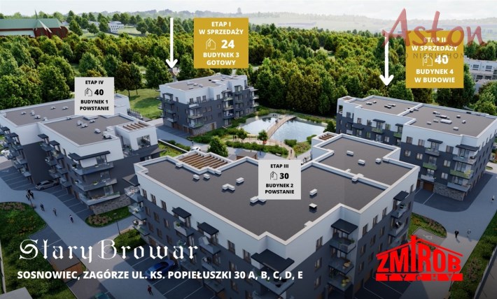 Apartamenty Stary Browar to niezwykle kameralna inwestycja w dzielnicy Zagórze w Sosnowcu przy ulicy ks. Jerzego Popiełuszki. Nowoczesna architektura, wygodne układy wnętrz oraz doskonałe doświetlenie pomieszczeń gwarantują przyszłym mieszkańcom wysoki komfort każdego dnia. Osiedle Stary Browar oferuje zarówno funkcjonalne mieszkania, jak i unikalne rozwiązania. Obejmuje cztery nowoczesne apartamentowce, każdy o czterech kondygnacjach mieszkalnych, łącznie 138 mieszkań. Każdy z budynków będzie posiadał komórki lokatorskie, windę oraz indywidualne garaże na poziomie 0, a dodatkowo w budynkach 1 i 2 powstaną miejsca postojowe w garażu podziemnym.
