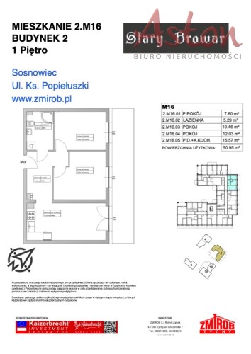 2M16 - mieszkanie o powierzchni 50,31 m2, 1 piętro, 3 pokoje, taras - 15,81 m2.