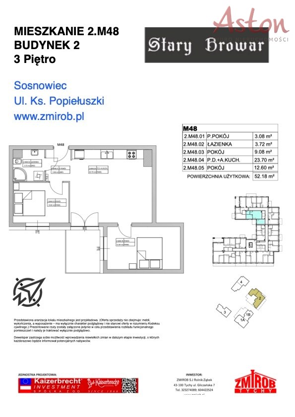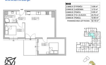 2M48 - mieszkanie o powierzchni 52,18 m2, 3 piętro, 3 pokoje, balkon.