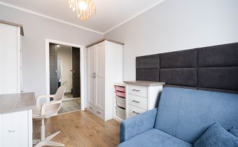 Mieszkanie jest jasne i dwustronne, co zapewnia naturalne doświetlenie przez cały dzień. Z salonu można wyjść bezpośrednio na balkon z widokiem na zieleń. Układ pomieszczeń pozwala na elastyczną aranżację wnętrza.