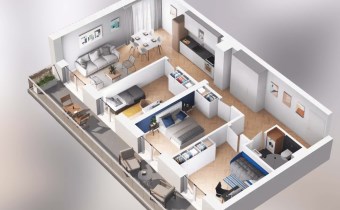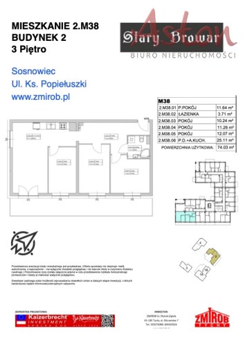 2M38 - mieszkanie o powierzchni 74,03 m2, 3 piętro, 4 pokoje, taras - 20,38 m2.