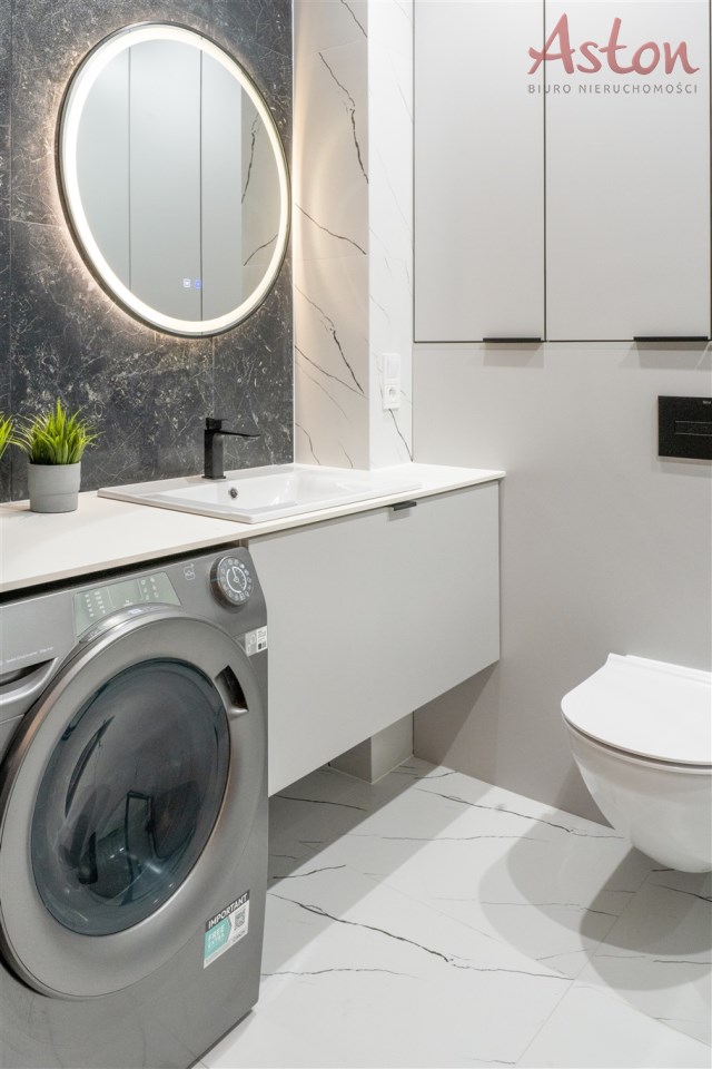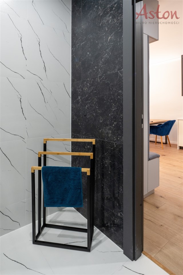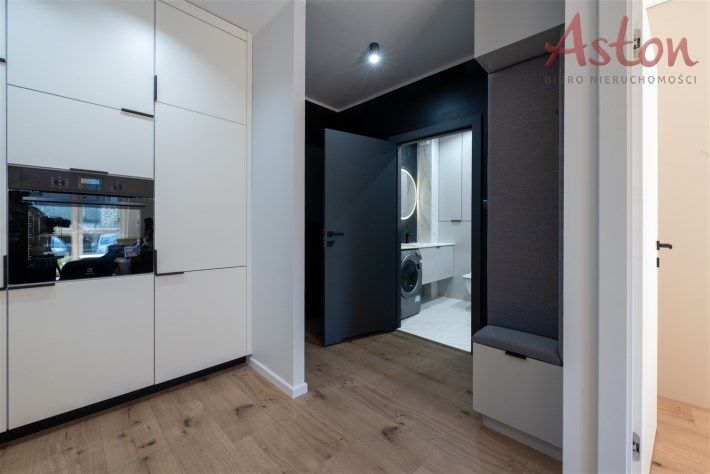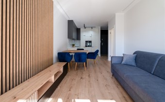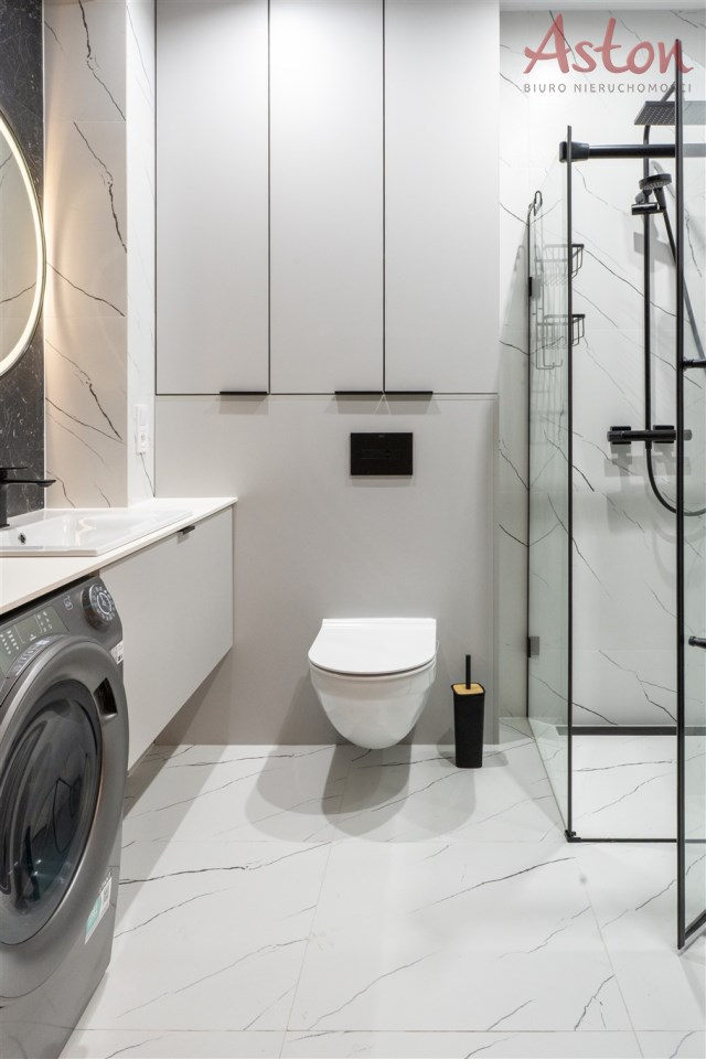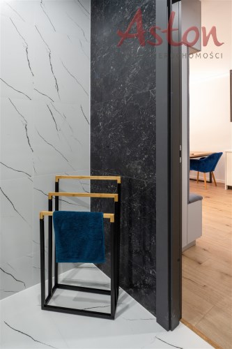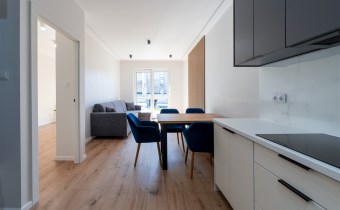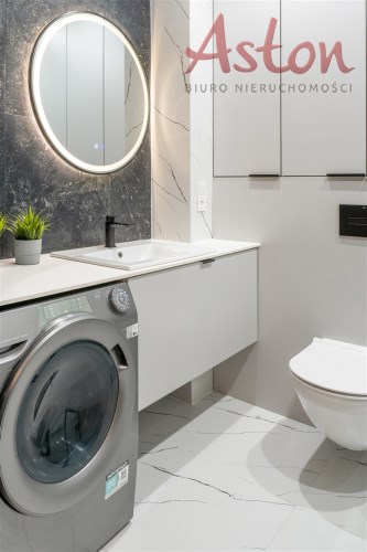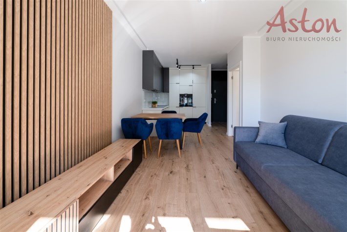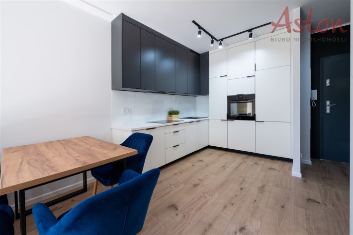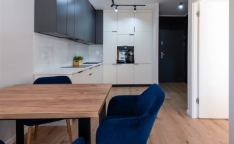 Mieszkanie jest gotowe do zamieszkania. Aneks kuchenny wyposażony w nowe AGD (lodówka, piekarnik, płyta indukcyjna, zmywarka). W salonie znajduje się stół z krzesłami sofa oraz stolik rtv. Dodatkowym atutem jest miejskie ogrzewanie podłogowe oraz ciepła woda z sieci – bez instalacji gazowej.