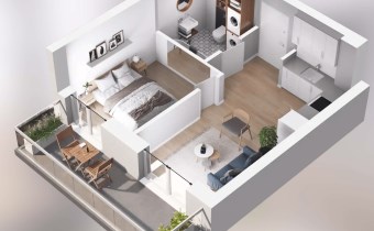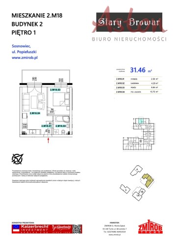 2M18 - mieszkanie o powierzchni 31,46 m2, 1 piętro, 2 pokoje, taras - 9,23 m2.
