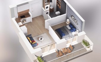2M14 - mieszkanie o powierzchni 31,54 m2, 1 piętro, 2 pokoje, taras - 9,83 m2.