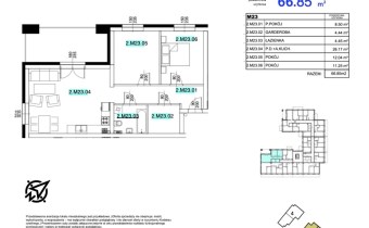 2M23 - mieszkanie o powierzchni 66,85 m2, 2 piętro, 3 pokoje, taras - 13,45 m2.