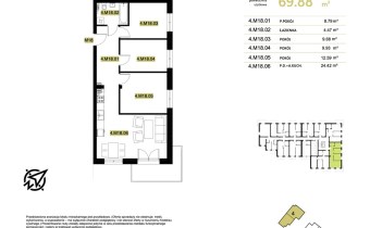 4M12 - mieszkanie o powierzchni 69,88 m2, 1 piętro, 4 pokoje + balkon 6,75 m2.