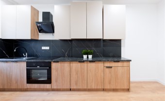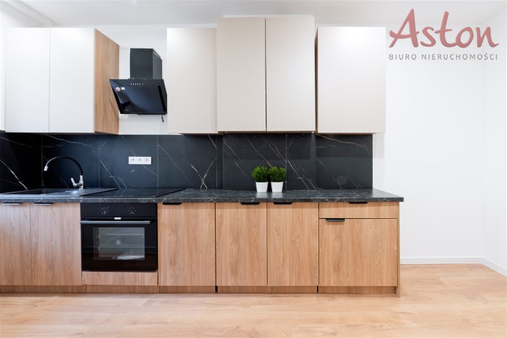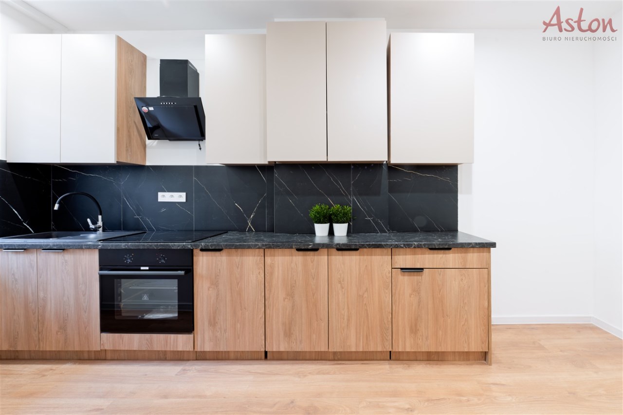 • Kuchnia wyposażona w zabudowę meblową, płytę elektryczną, piekarnik, okap i zlew