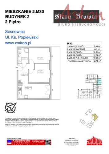 Prezentujemy ofertę bezpośrednią z biura sprzedaży dewelopera ZMIROB. Mieszkanie o numerze 2M30 znajduje się w III etapie inwestycji „Apartamenty Stary Browar” w Sosnowcu (dzielnica Zagórze). Budynek został oddany do użytkowania - oznacza to, że możesz odebrać klucze natychmiast po finalizacji transakcji.