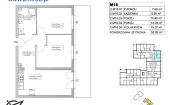 2M16 - mieszkanie o powierzchni 50,31 m2, 1 piętro, 3 pokoje, taras - 15,81 m2.