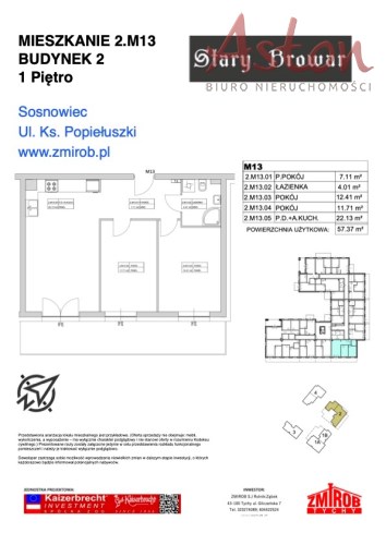 Szukasz miejsca, które pogodzi szybki tryb życia z potrzebą wyciszenia? Apartamenty Stary Browar w dzielnicy Zagórze to kameralna inwestycja, w której nowoczesna architektura współgra z otaczającą naturą. Prezentujemy mieszkanie 2M13 o powierzchni 57,37 m², usytuowane na 1. piętrze w oddanym do użytkowania budynku nr 2.