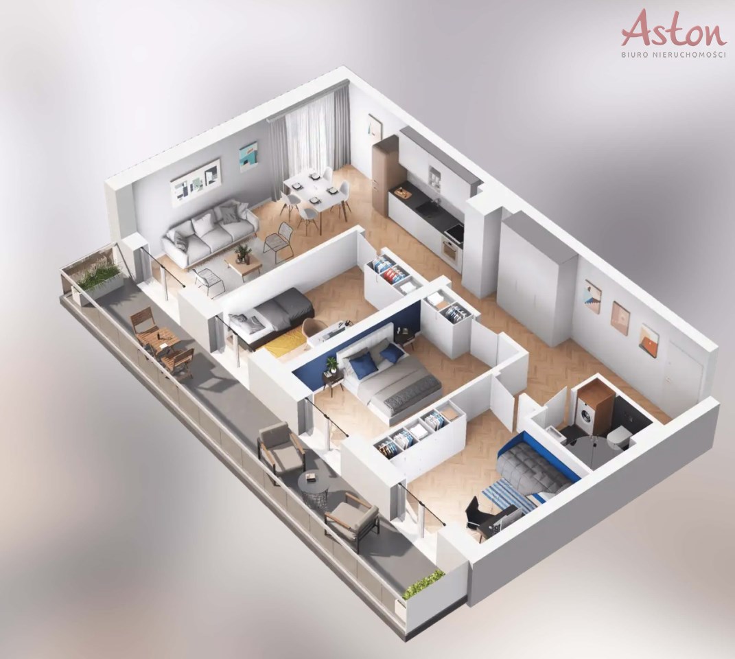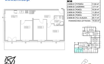 2M38 - mieszkanie o powierzchni 74,03 m2, 3 piętro, 4 pokoje, taras - 20,38 m2.