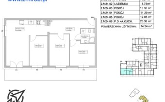 • Powierzchnia: 74,39 m2 (4 pokoje)