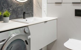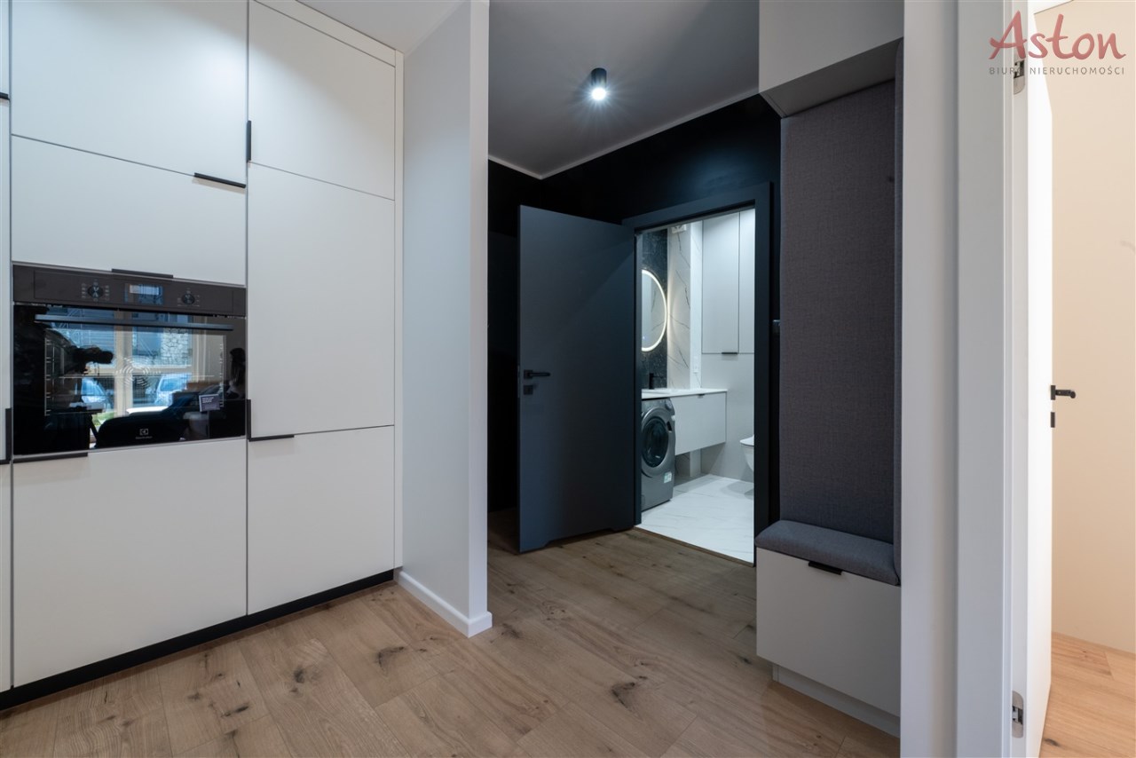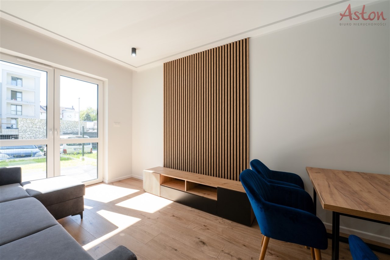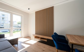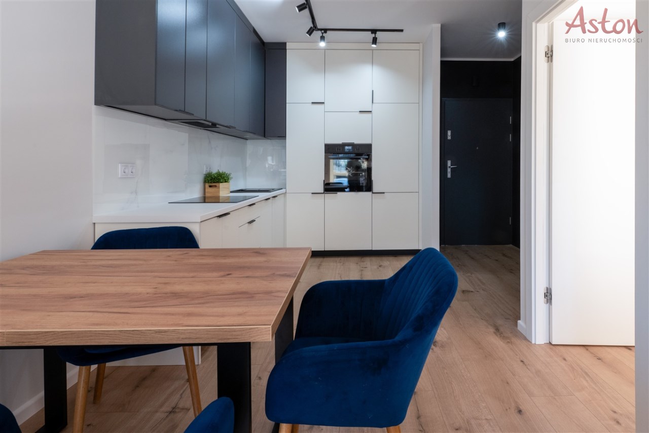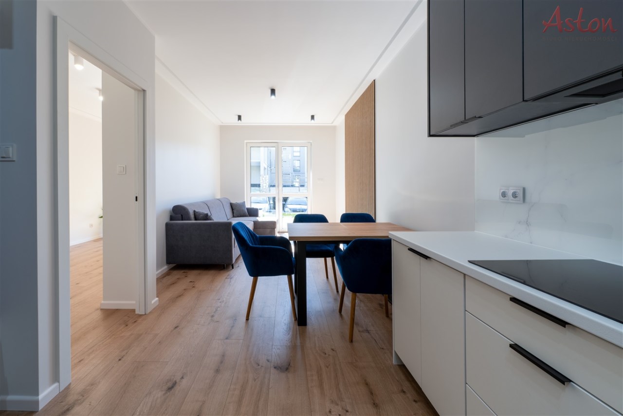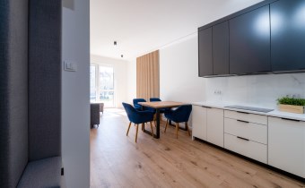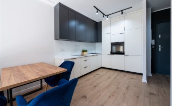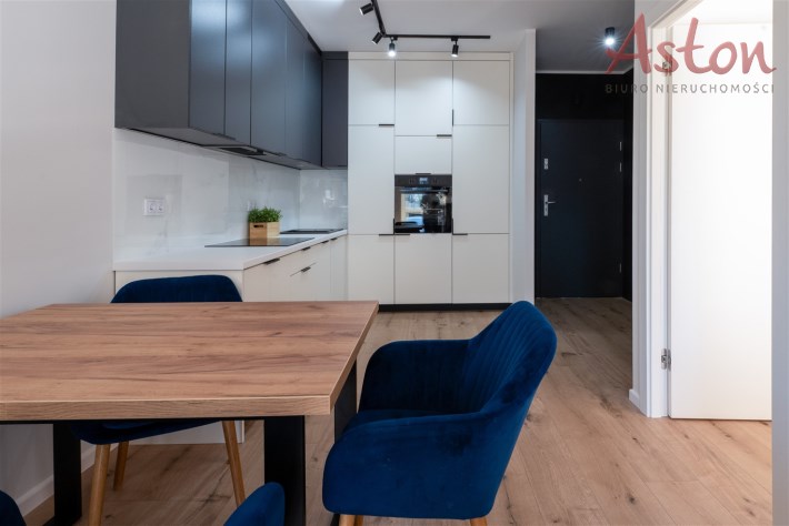 Mieszkanie jest gotowe do zamieszkania. Aneks kuchenny wyposażony w nowe AGD (lodówka, piekarnik, płyta indukcyjna, zmywarka). W salonie znajduje się stół z krzesłami sofa oraz stolik rtv. Dodatkowym atutem jest miejskie ogrzewanie podłogowe oraz ciepła woda z sieci – bez instalacji gazowej.